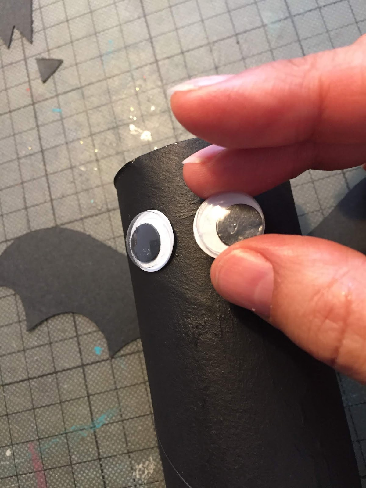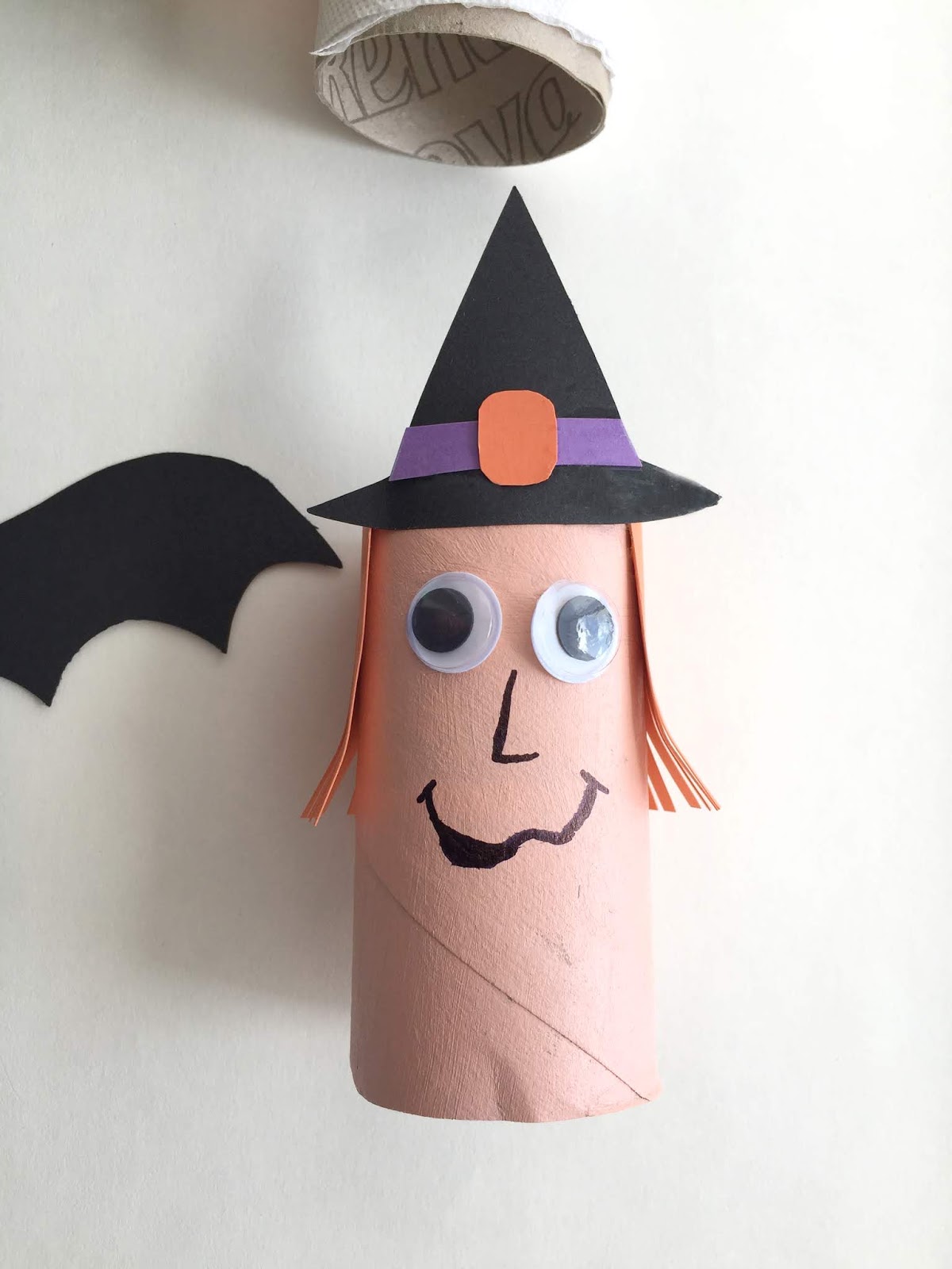 Colei com cola quente nas laterais do ovo, com a caneta preta desenhei os olhos e a boca.
