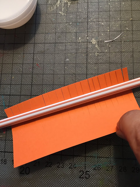 Colei o molde em cartão e pincelei o papel EVA com tinta laranja.