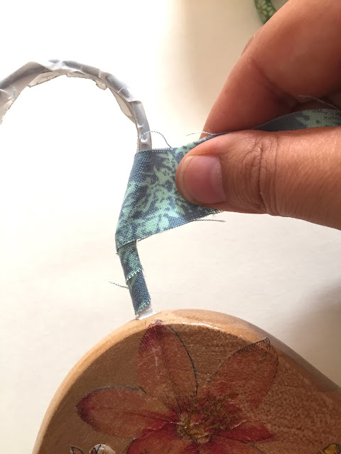 Usei uma linha maior que cosi no pacotinho e na extremidade da linha colei um coração de cartolina.