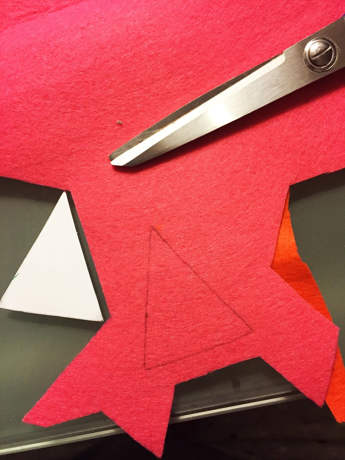 Comecei por medir o diâmetro da base do "balde" e dividi em 6 partes, formando 8 triângulos. Recortei um deles que serviu de medida para os feltros.